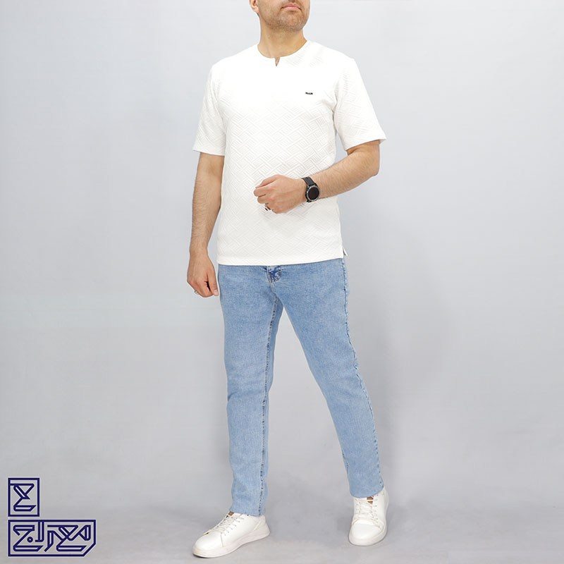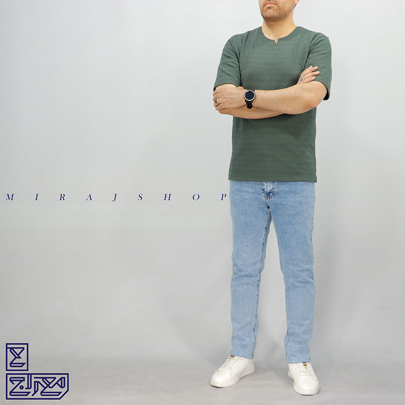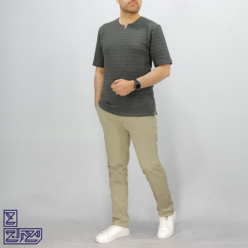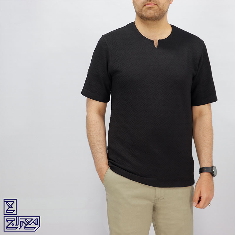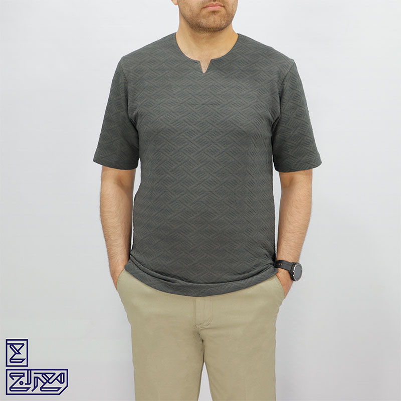 تیشرت پنبه ژاکارد یقه کوبایی 2196